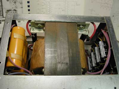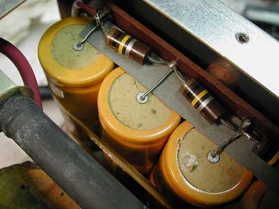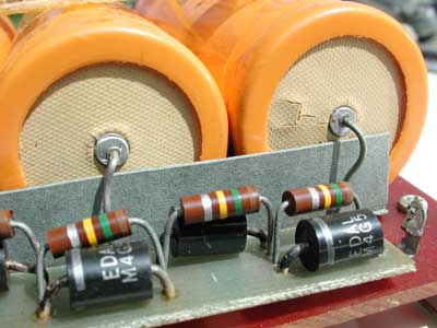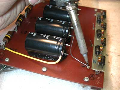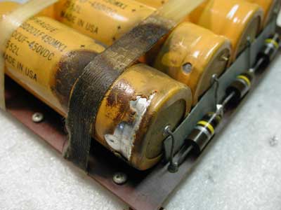 Upgraded Power Supply, showing replacement capacitors,