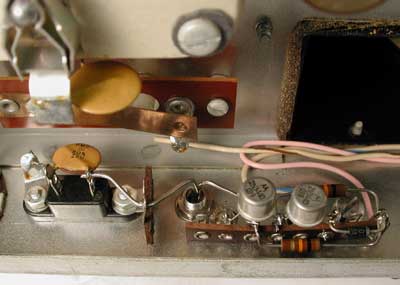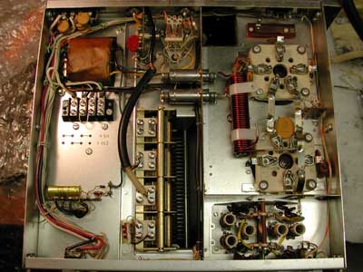 Under-chassis view of the clean RF deck. Aging and cracked filament