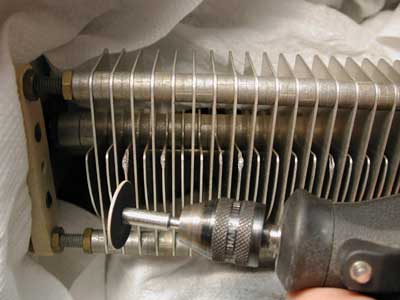 A more careful examination of the tuning capacitor revealed evidence in several places, of slight plate melting and decrease of plate spacing (due to arcing from operating into a poor match, or maybe "high power tuning"?...see below)..I was not happy to see this, but it was minor...I decided to grind the plates back down to their original thickness to at least get back to the original voltage rating of the cap.